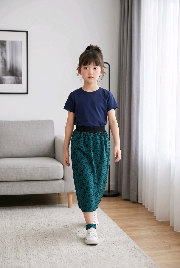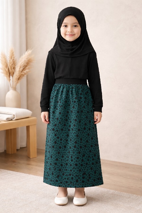 Kız Çocuk Puantiye Desenli Beli Lastikli Astarlı Etek